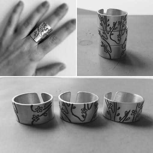 A gyűrű 925-ös finomságú ezüstből készült, a fa pedig véséssel kerül az ezüst felületére. Rendelhető akár 2, akár 3 darabos (vagy több) szettben.