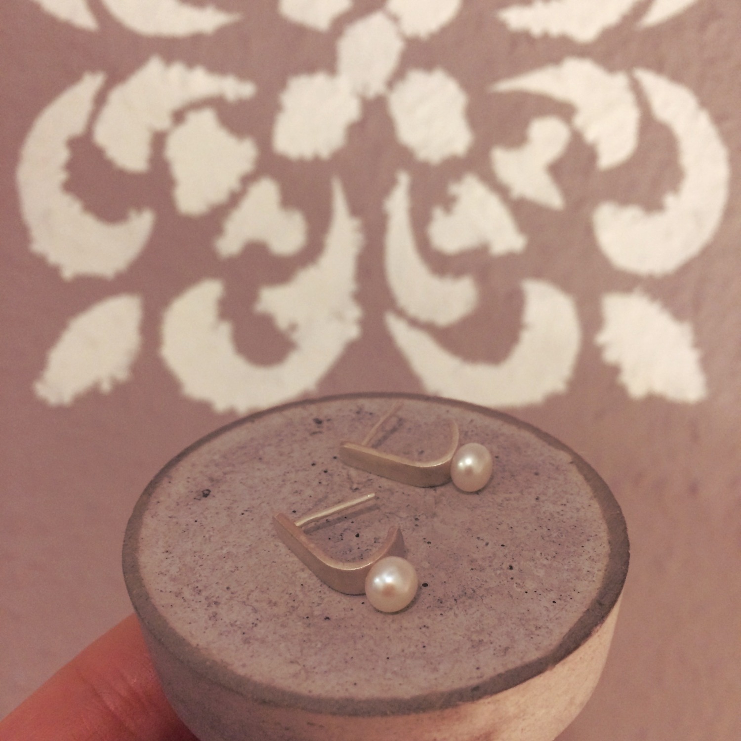Klassikus és modern egyszerre ez a pici ezüst bedugós fülbevaló, melynek vége hajíltott, valamint egy fehér édesvizi gyöngy pihen meg rajta. A fülbevaló 925-ös finomságú ezüstből készült.