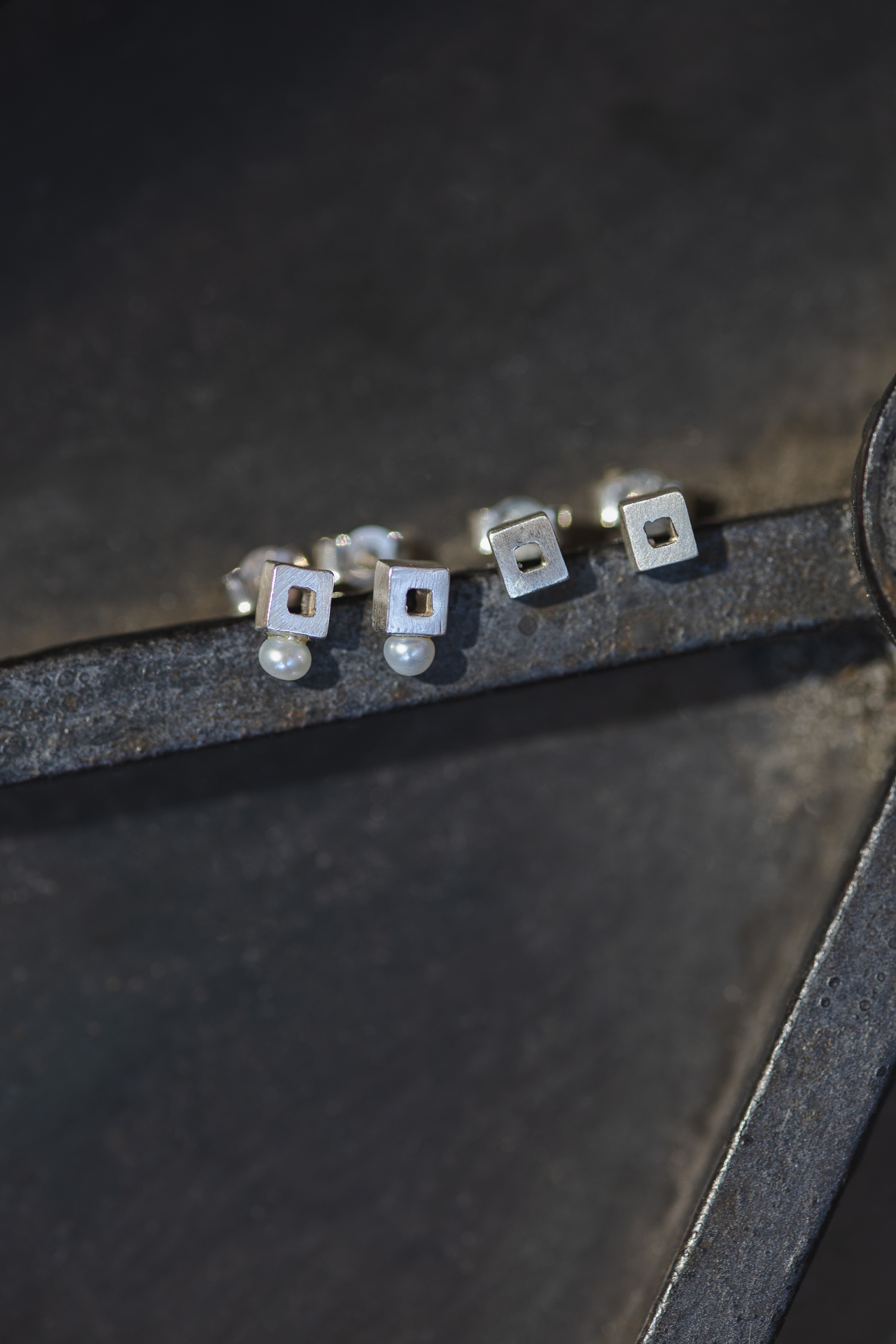 925-ös finomságú ezüstből készült fülbevaló fehér édesvízi gyönggyel.