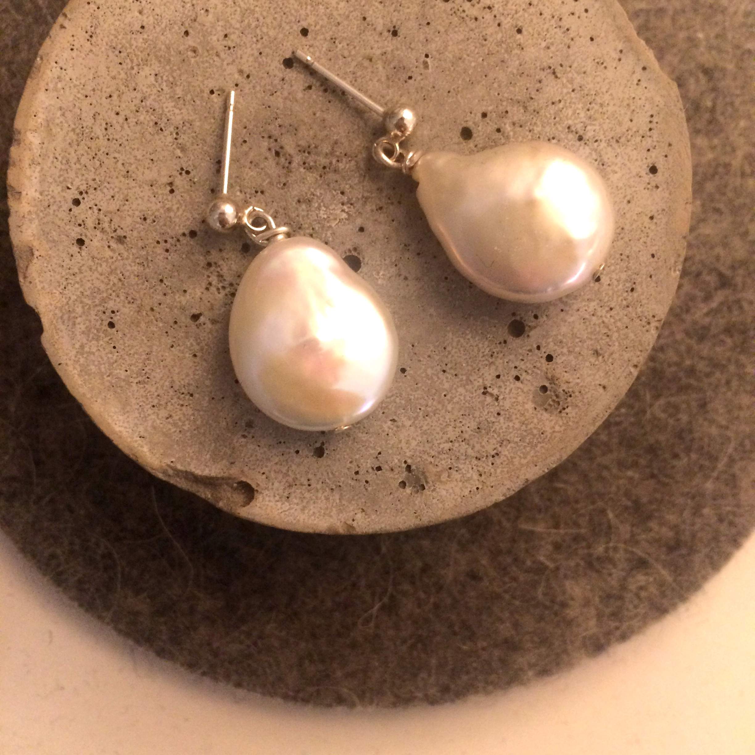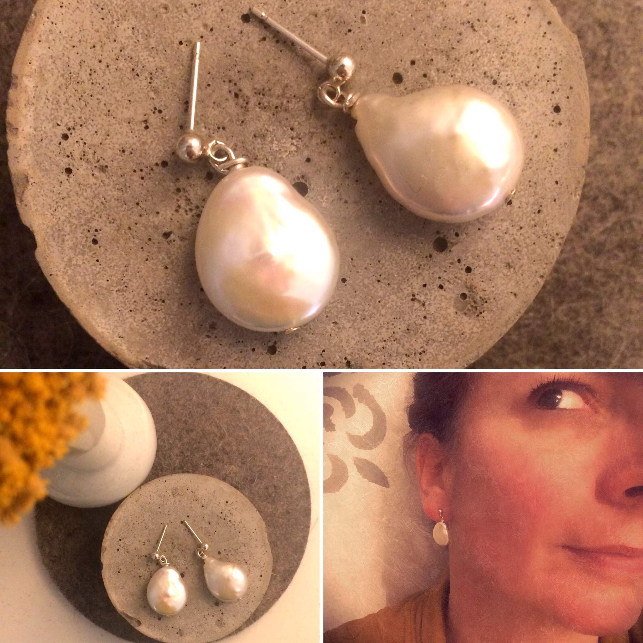 925-ös finomságú ezüstből készült bedugós fülbevaló édesvizi gyönggyel.