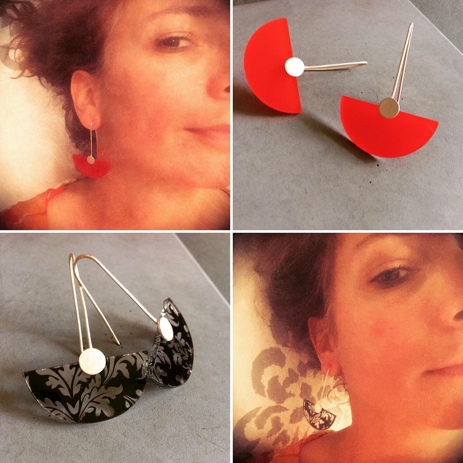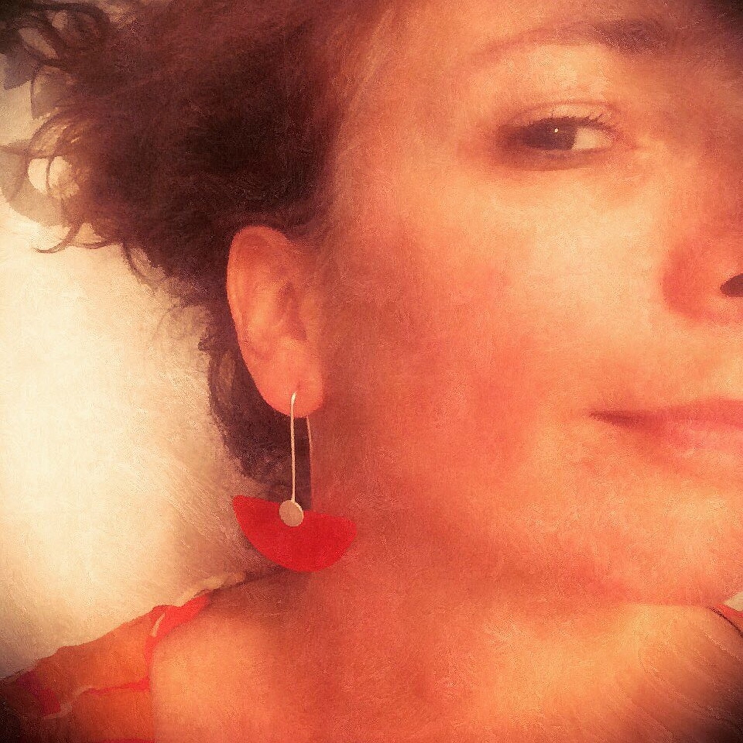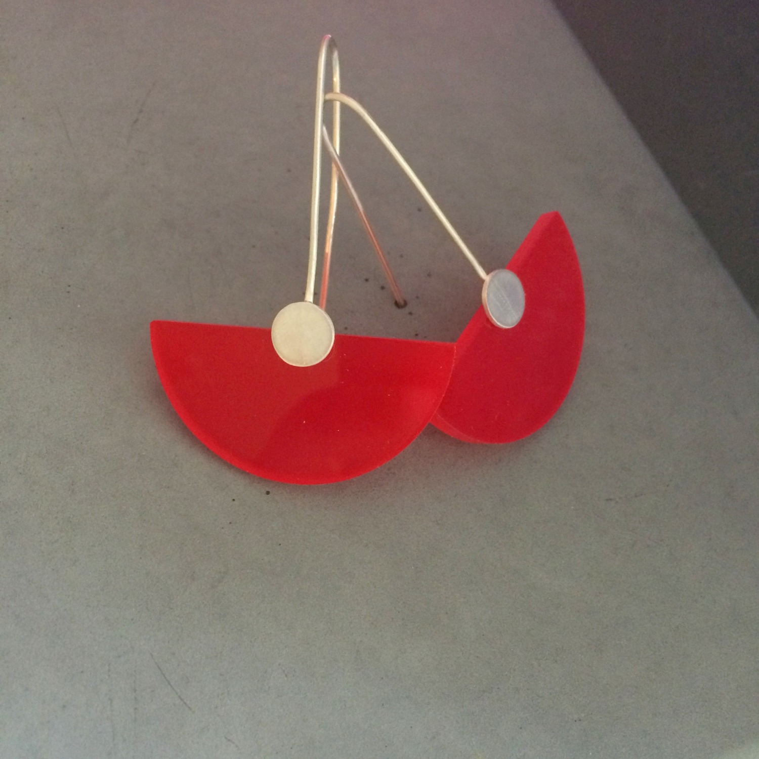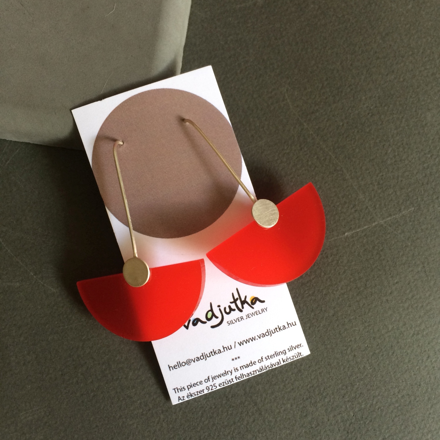 Ez a fülbevaló számomra a játékos eleganciát hordozza magában. 925-ös finomságú ezüstből készült fülbevaló piros, félkör alakú plexivel.