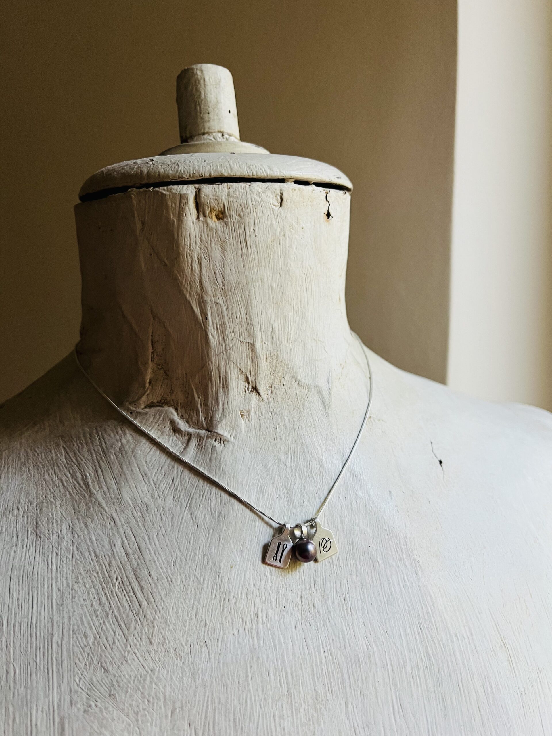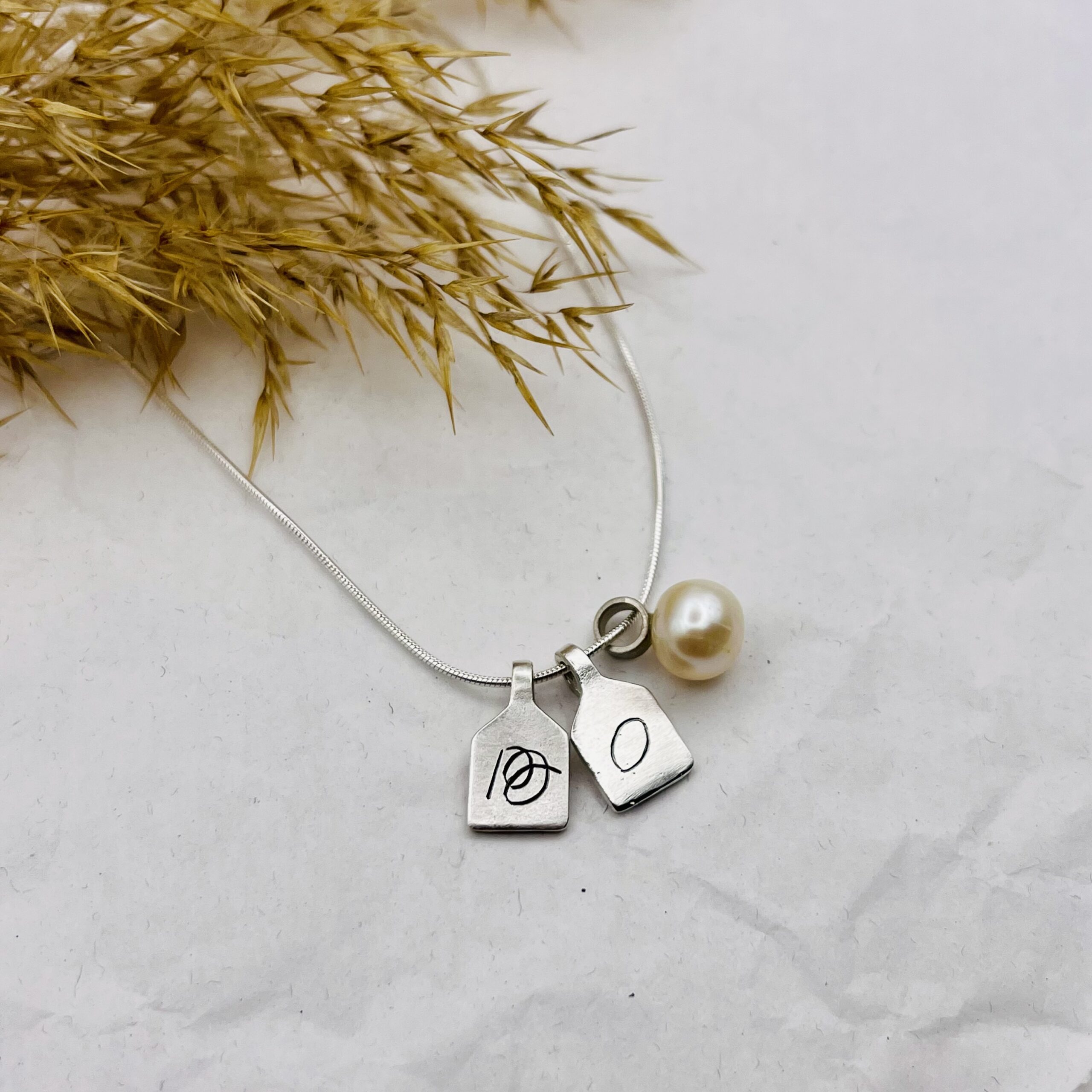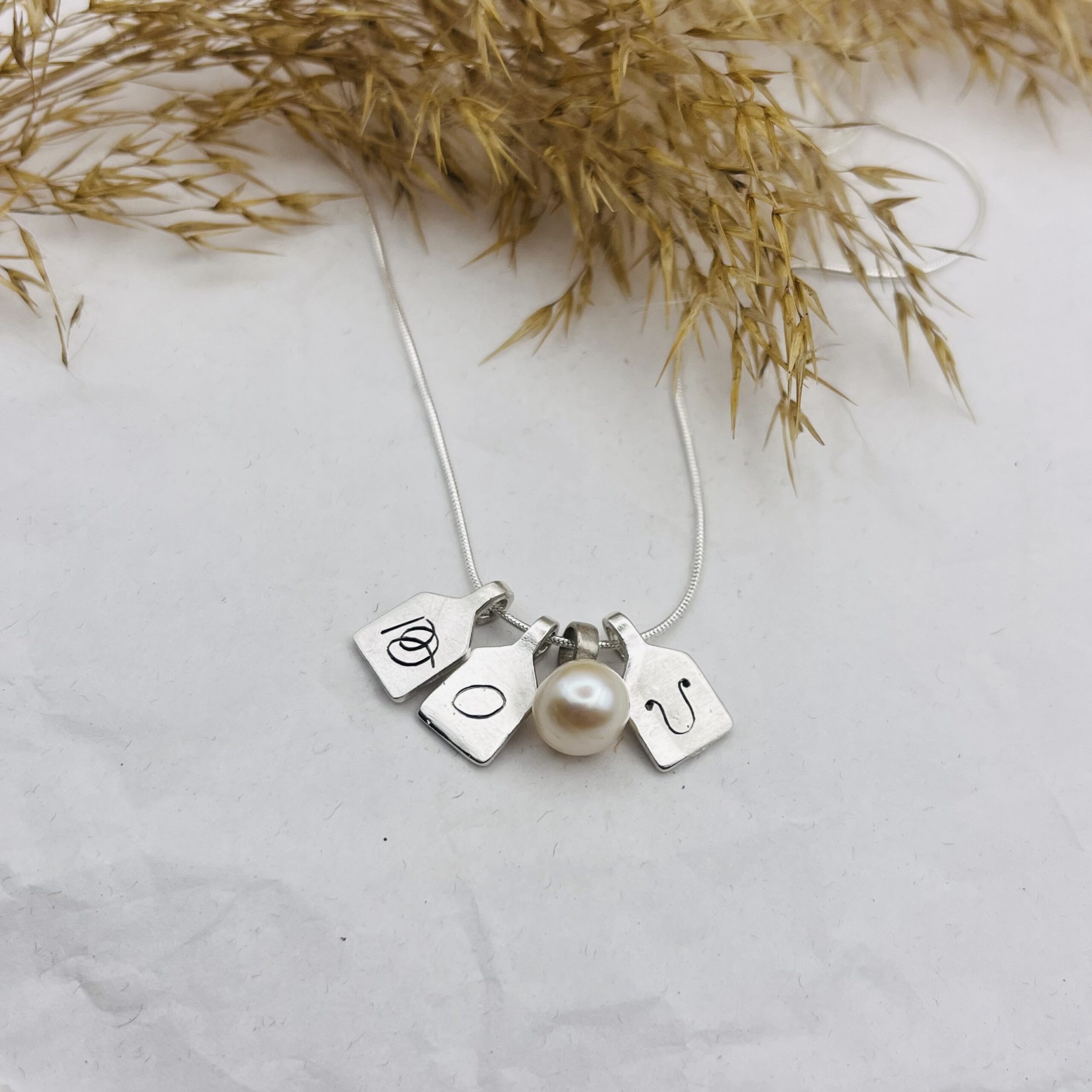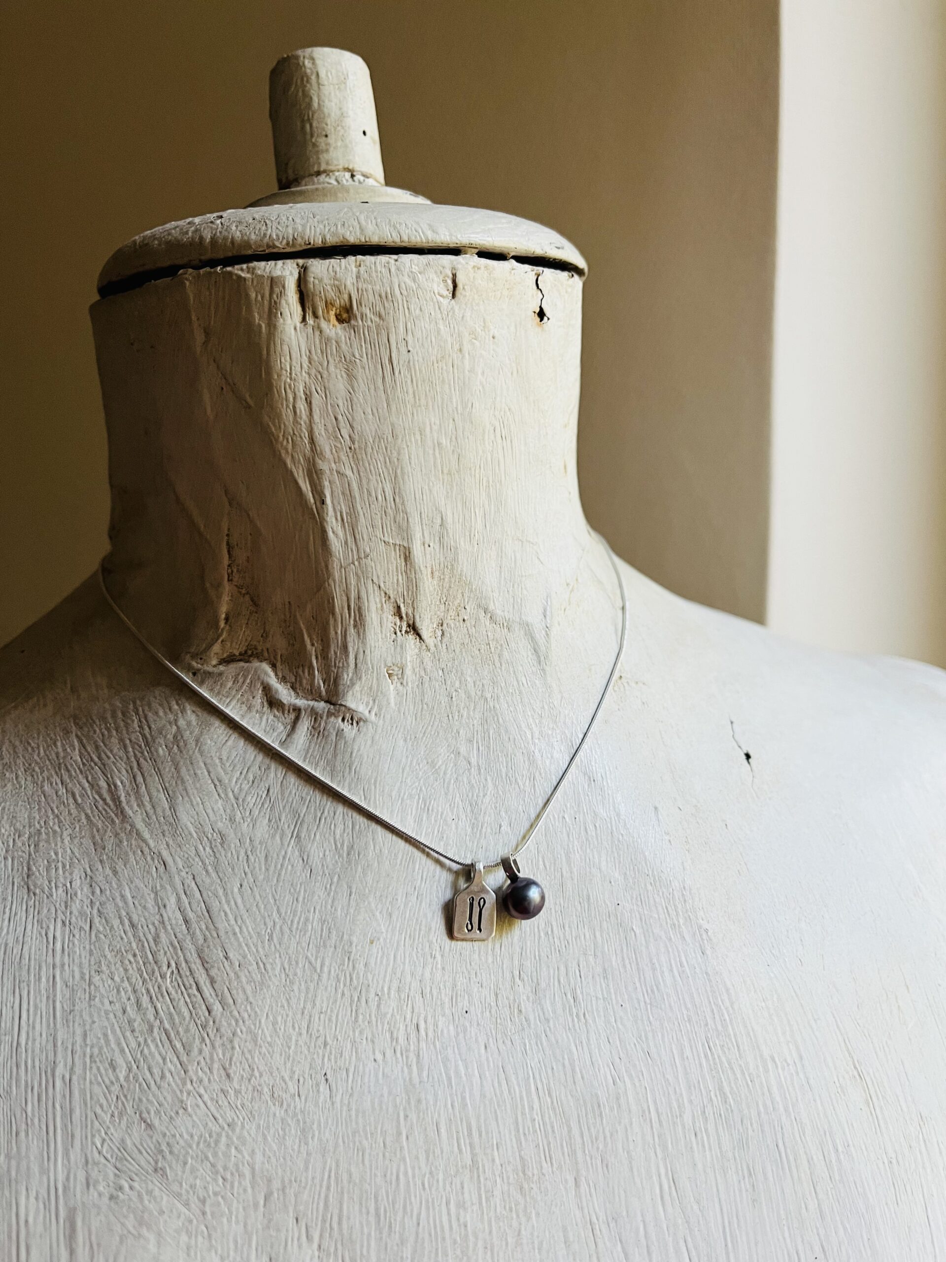 RG nyaklánc – állítsd össze a sajátodat – ezüst medállal, lánccal, gyönggyel fekete kiemeléssel – MEGRENDELÉSRE