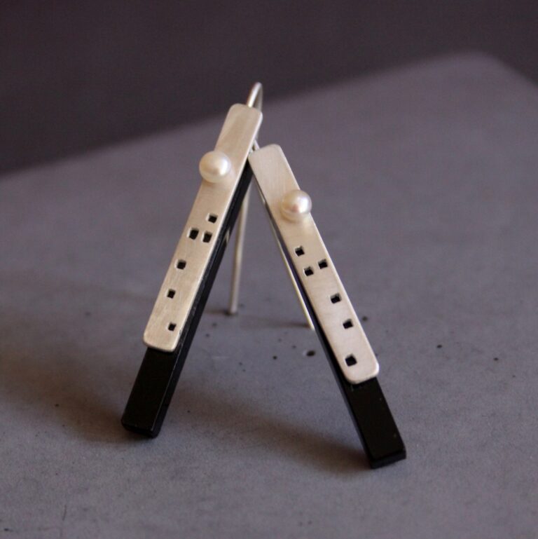 A plexire nyomtatott fekete alapon virágos minta könnyedséget és egyúttal eleganciát ad a 925-ös finomságú ezüstből készült fülbevalónak.