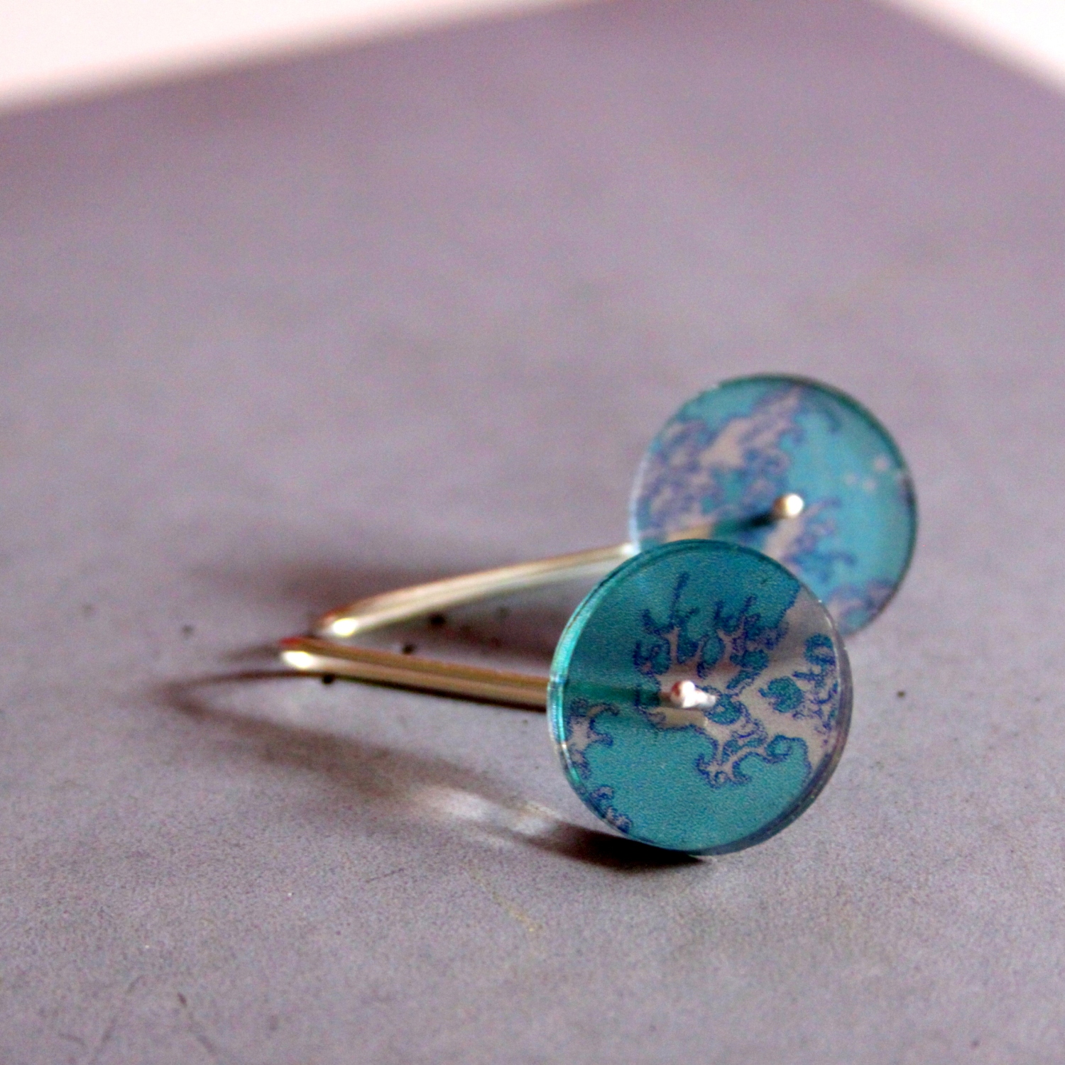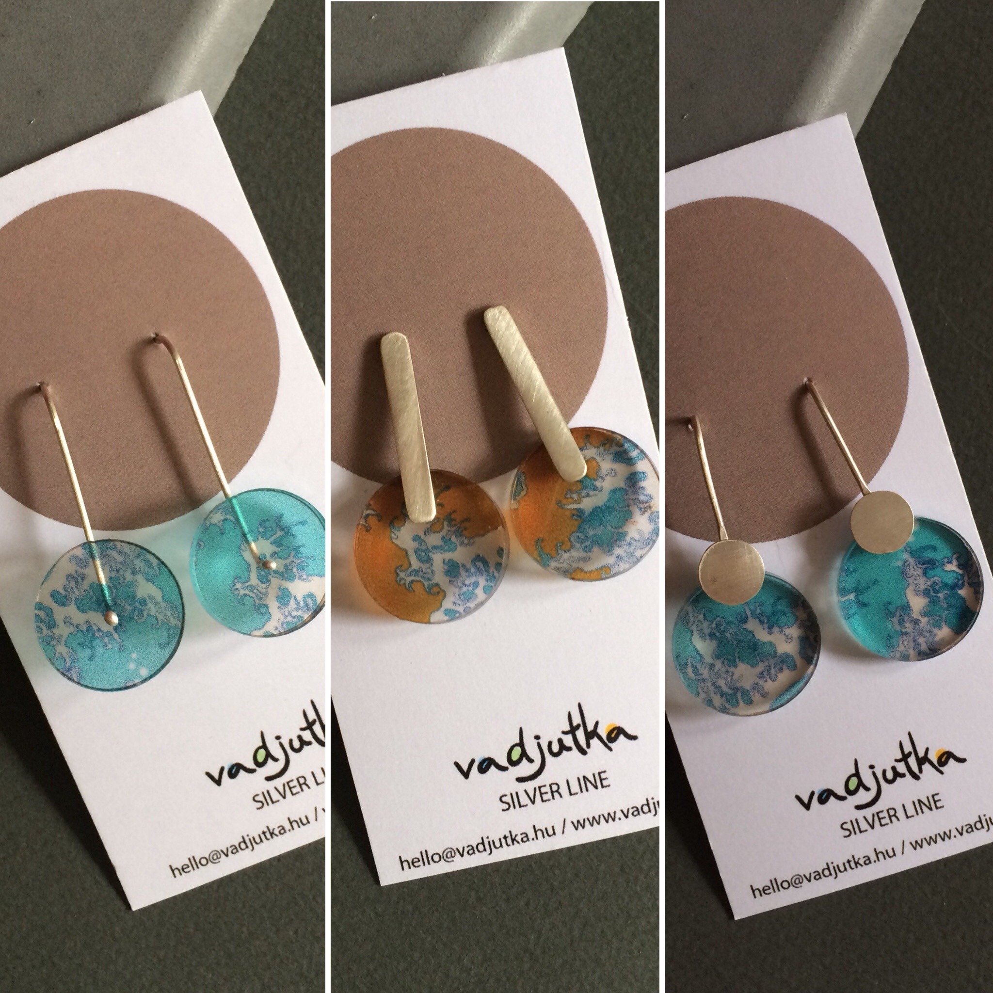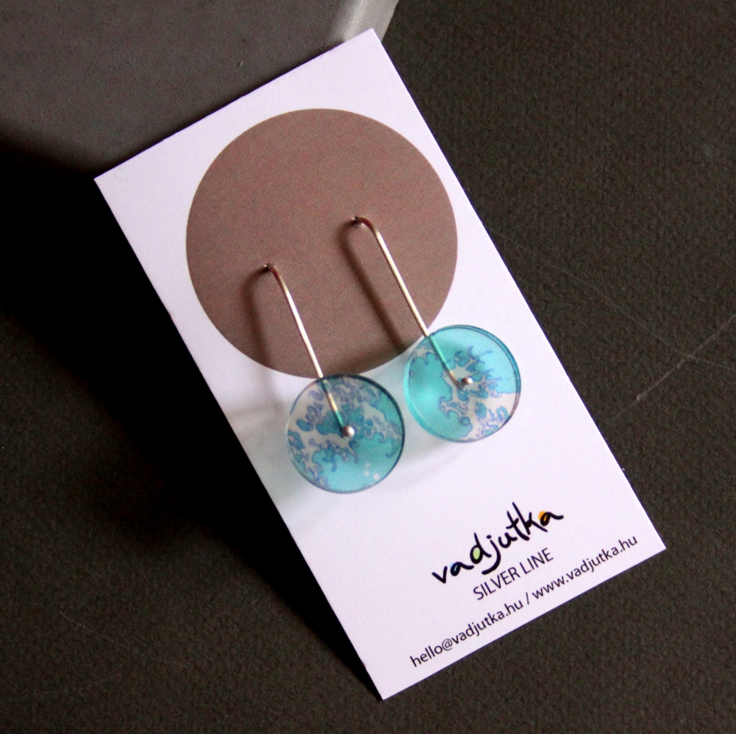 Tenger 3. ezüst fülbevaló – lógós ezüst fülbevaló nyomtatott plexivel, kortárs ékszer