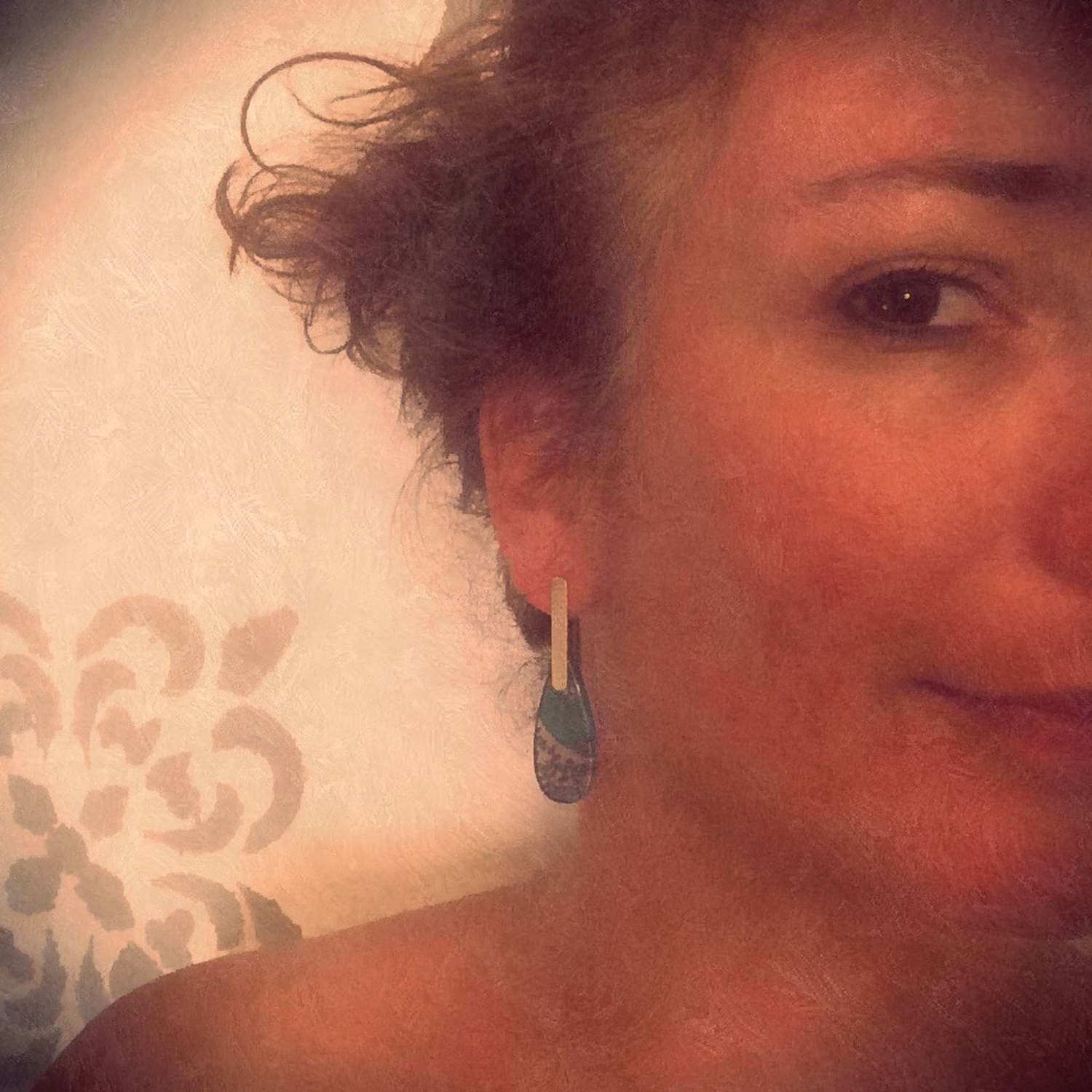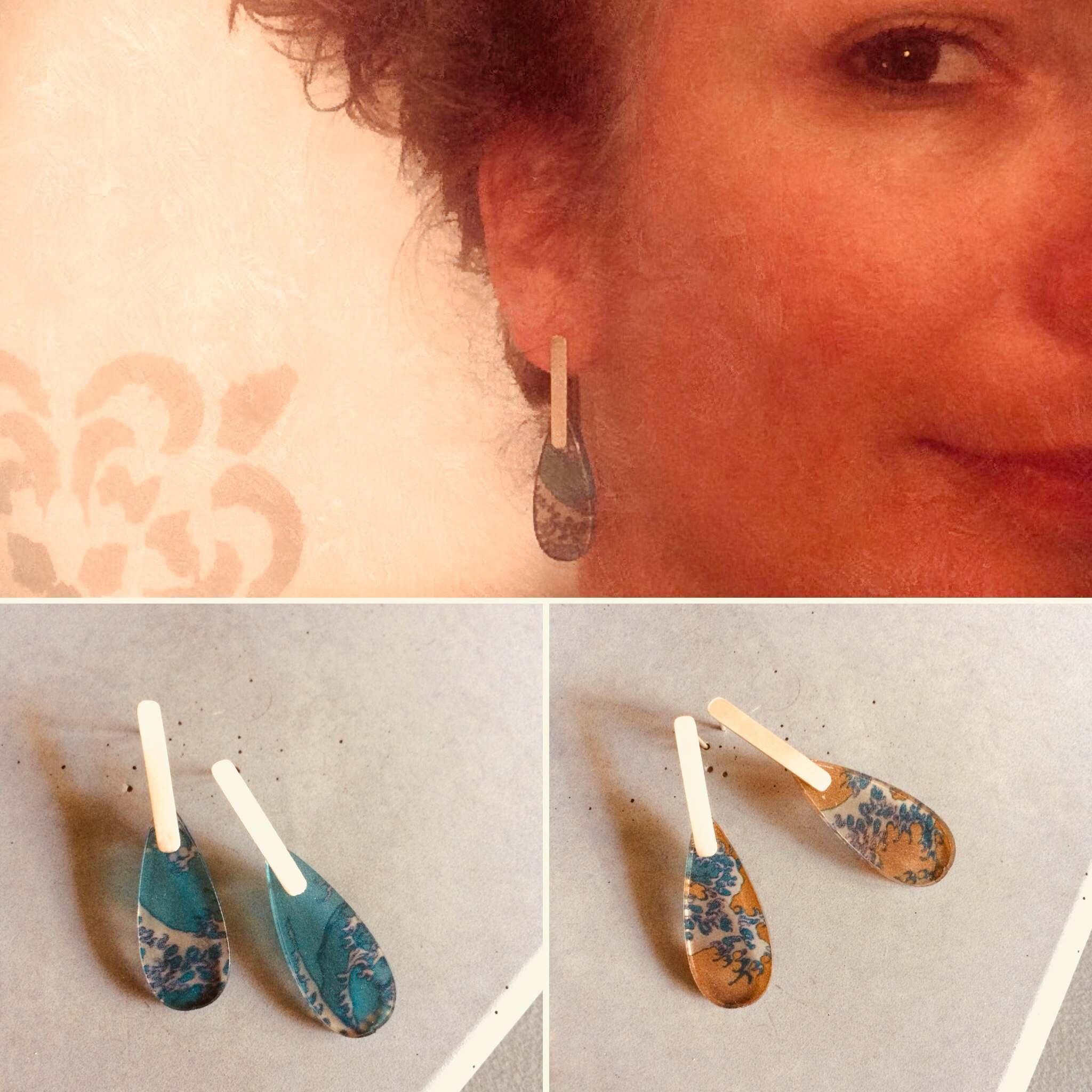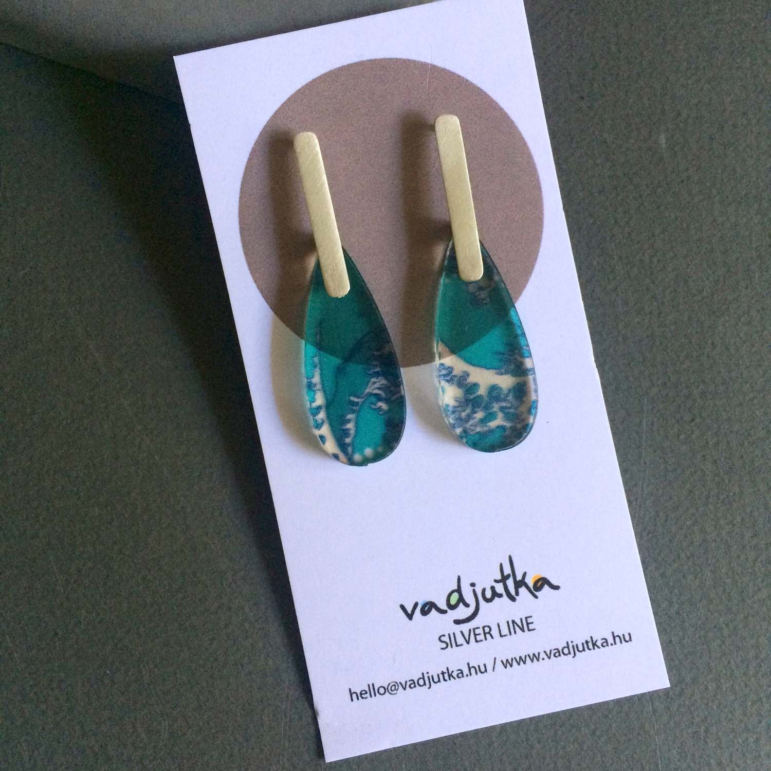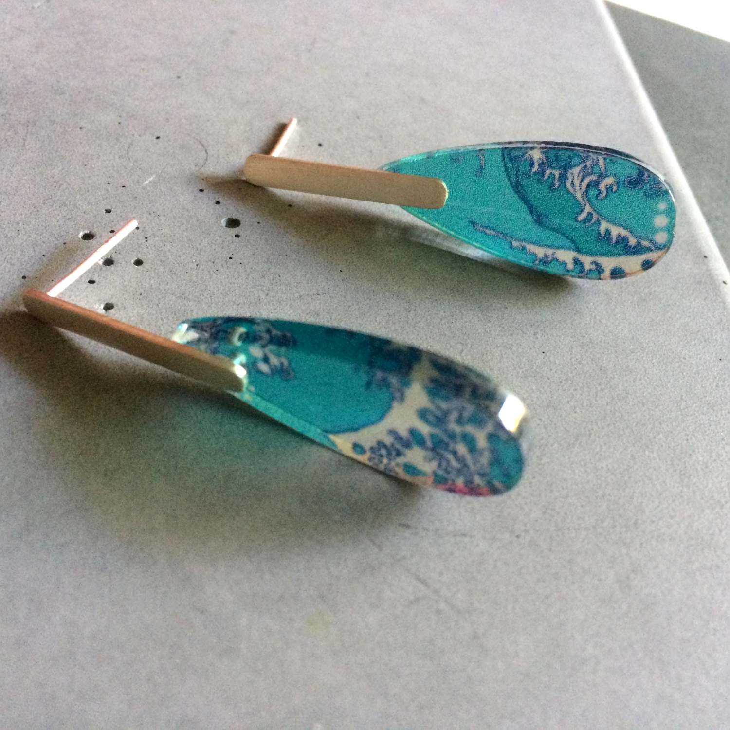 A plexire nyomtatott kék-fehér színű japán stílusú tenger minta könnyedséget és egyúttal eleganciát ad a 925-ös finomságú ezüstből készült fülbevalónak.